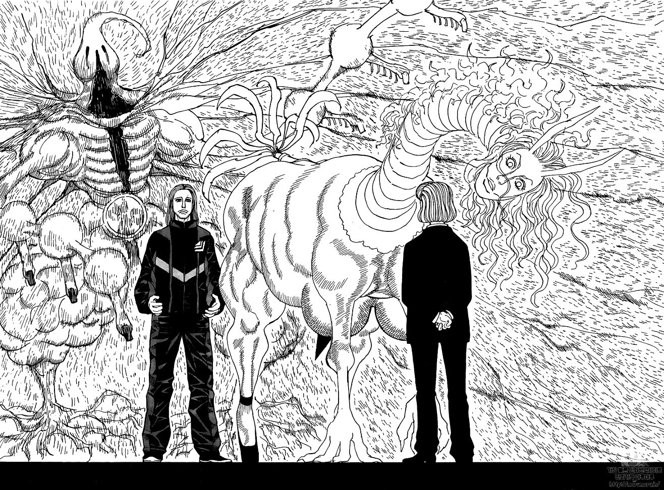 한편 계승식에 빠지고 싶어 하는 카쵸 왕자와, 그와 함께 탈출하려 하는 후게츠 왕자. 후게츠 왕자의 능력은 어디로든 이동할 수 있는 출구를 만드는 것.