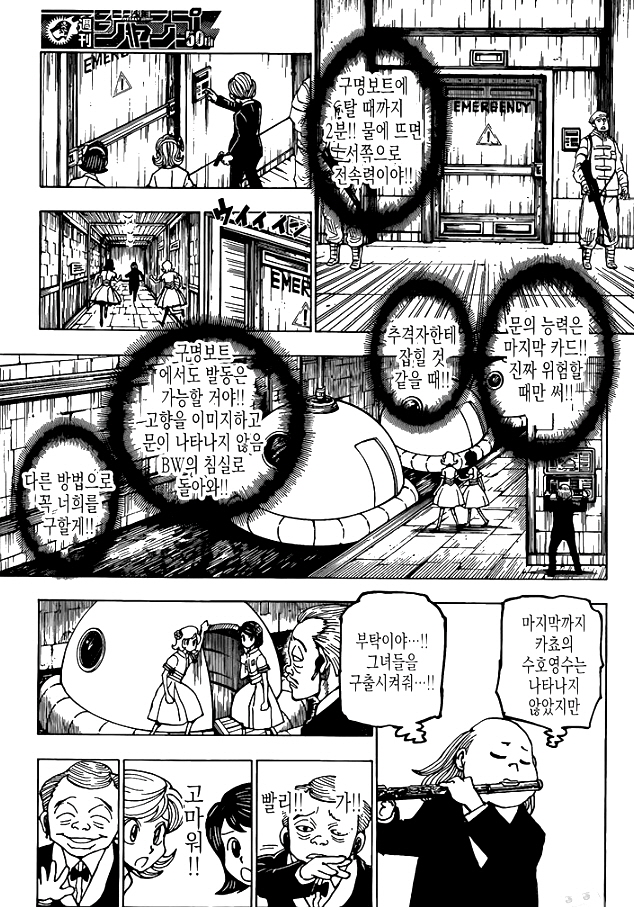 다행히 문을 열고 탈출한 후게츠. 그리고 뒤이어 문을열고 들어오는 카쵸..